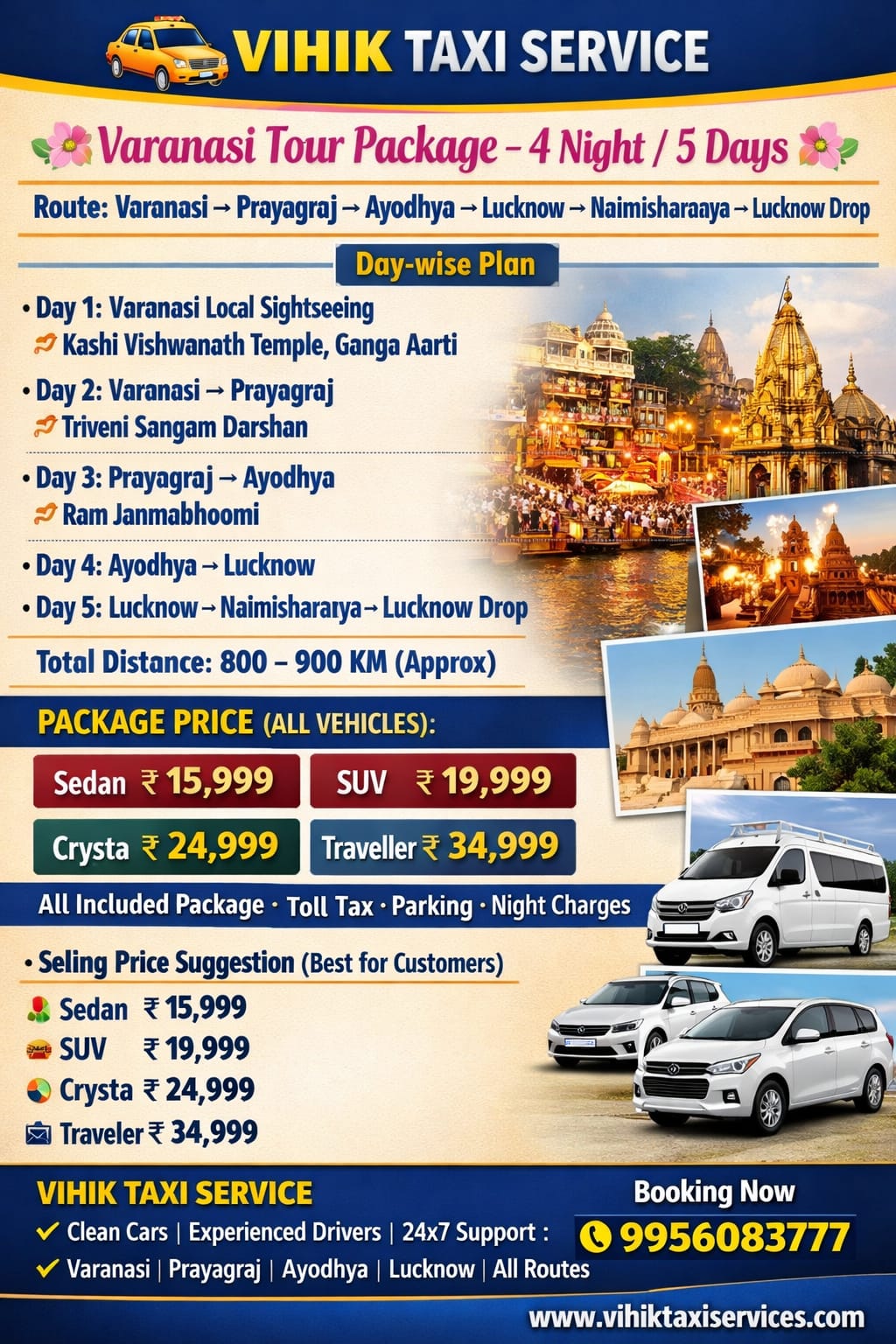 Varanasi → Prayagraj → Ayodhya → Lucknow → Naimisharaaya → Drop
